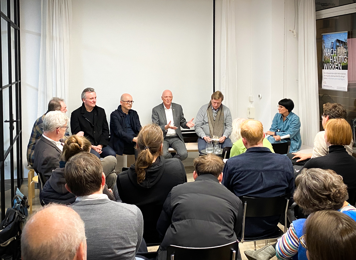 An der abschließenden Podiumsdiskussion nahmen neben den Autoren auch Arne Lorz, Abteilungsleiter der Stadtentwicklungsplanung, Thomas Rehn, Leiter der Lokalbaukommission, sowie Christian Hadaller, Vorstand der Wohnungsgenossenschaft Kooperative Großstadt, teil. Alle waren sich einig: Der Umbau von Büroflächen zu Wohnungen ist technisch machbar, baurechtlich umsetzbar und ein Baustein, um in München dringend benötigten Wohnraum zu schaffen.