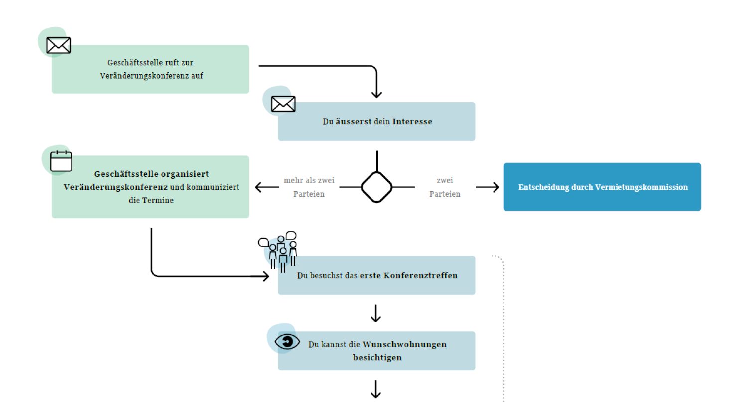 Die finale Entscheidung darüber, welche Variante umgesetzt wird, trifft die Vermietungskommission der Genossenschaft. Ziel ist es stets, möglichst viele passende Veränderungen zu ermöglichen.